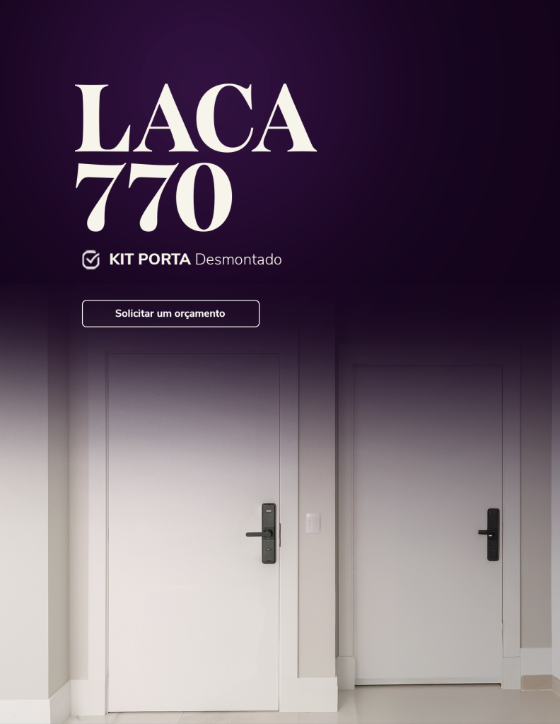 Já a Laca 770® foca em excelente custo-benefício. Com 770 gramas em 3 camadas, ela trabalha apenas com portas lisas, mas mantém toque aveludado, estética contínua e pintura robótica. Dessa forma, permite entrar no universo das portas laqueadas de alto padrão de forma mais acessível.